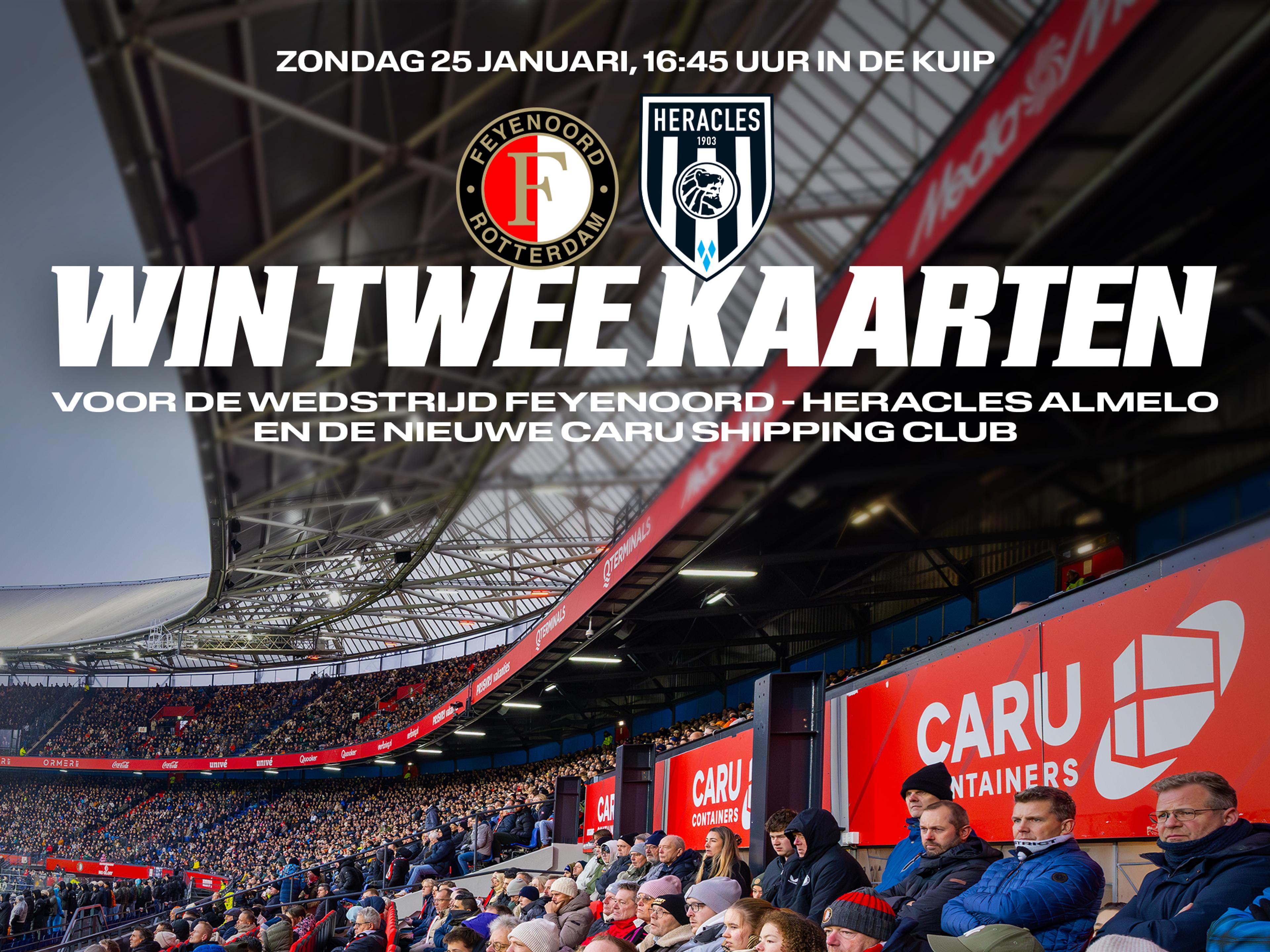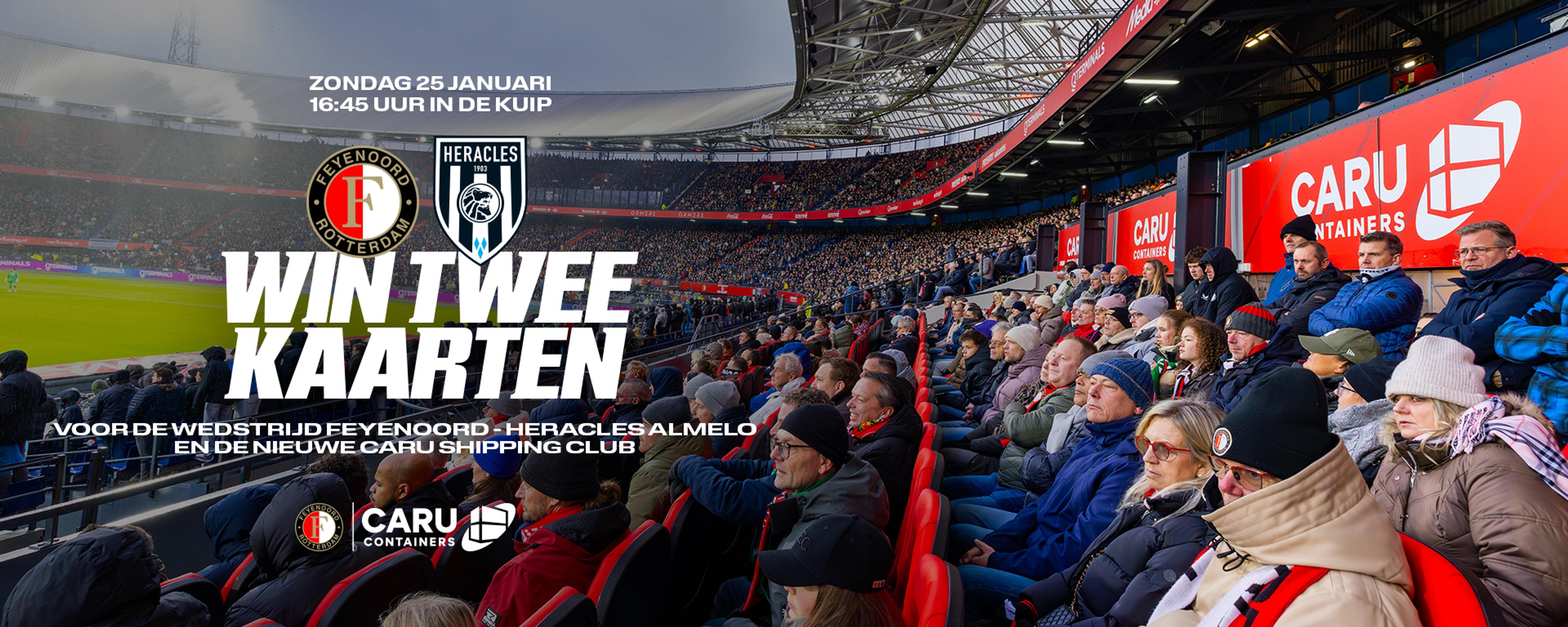 Wil jij aanstaande zondag naar De Kuip én daarnaast genieten van een hapje en drankje in de gloednieuwe CARU Shipping Club? CARU geeft jou de kans om exclusieve tickets te winnen voor Feyenoord – Heracles Almelo op zondag 25 januari.