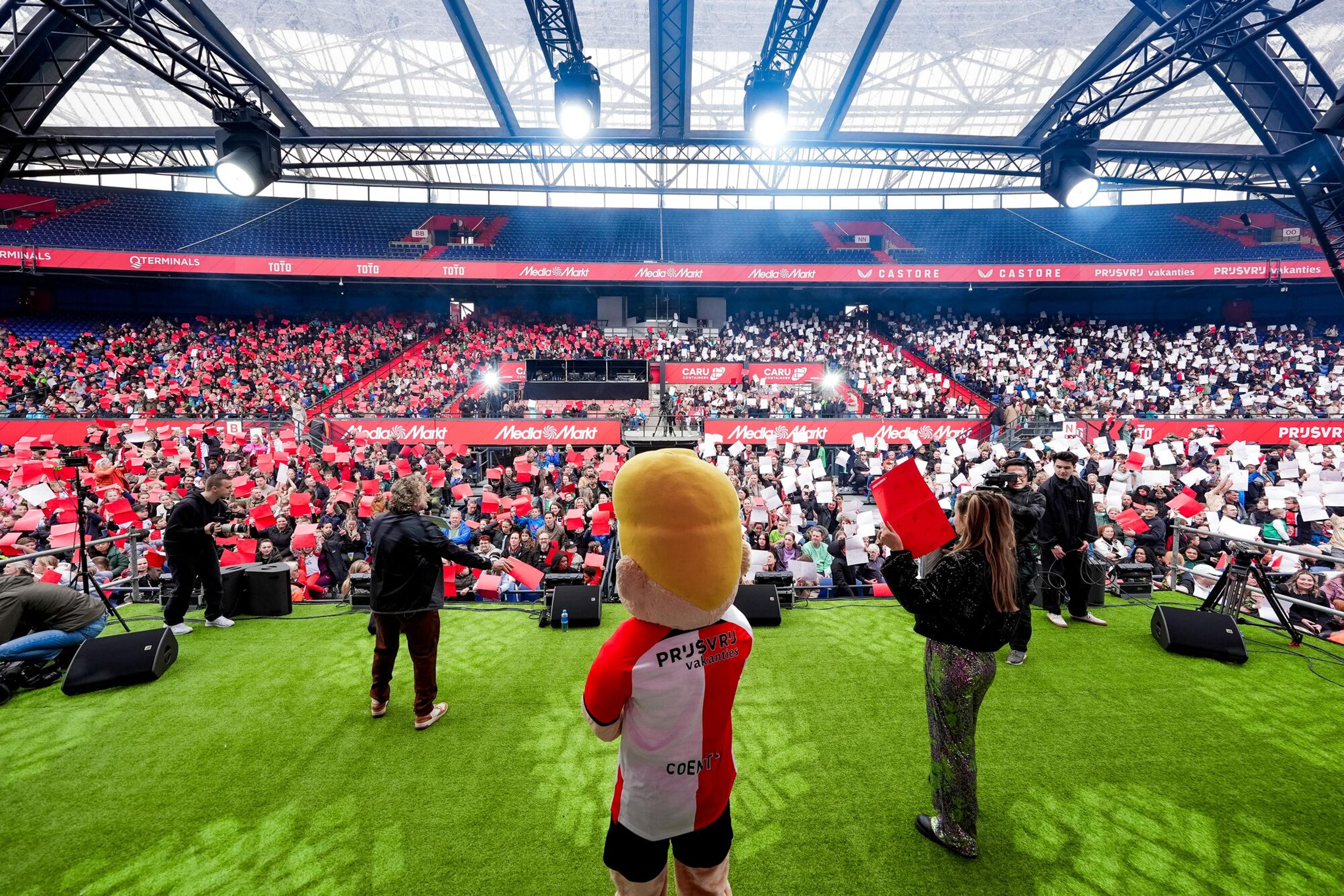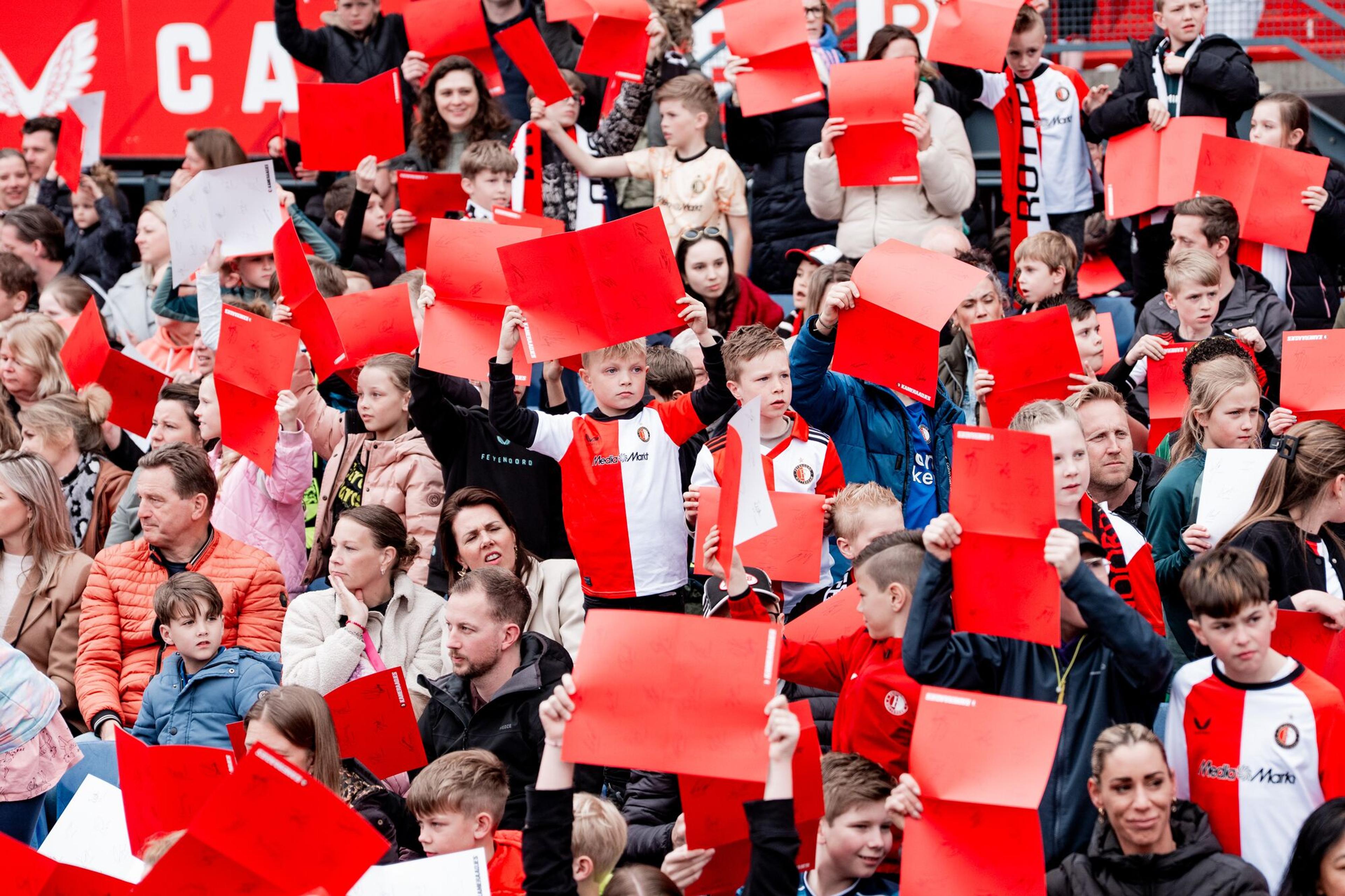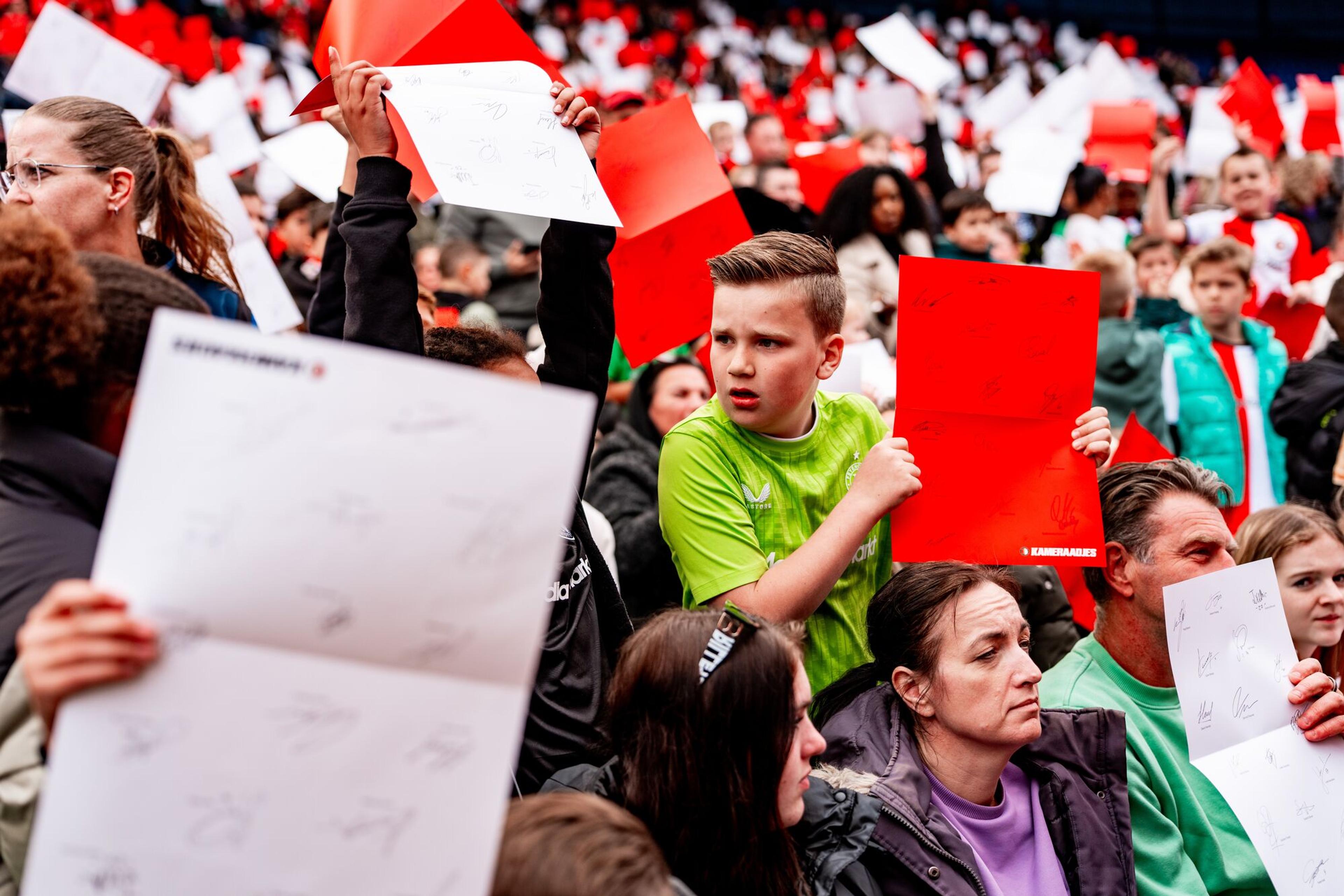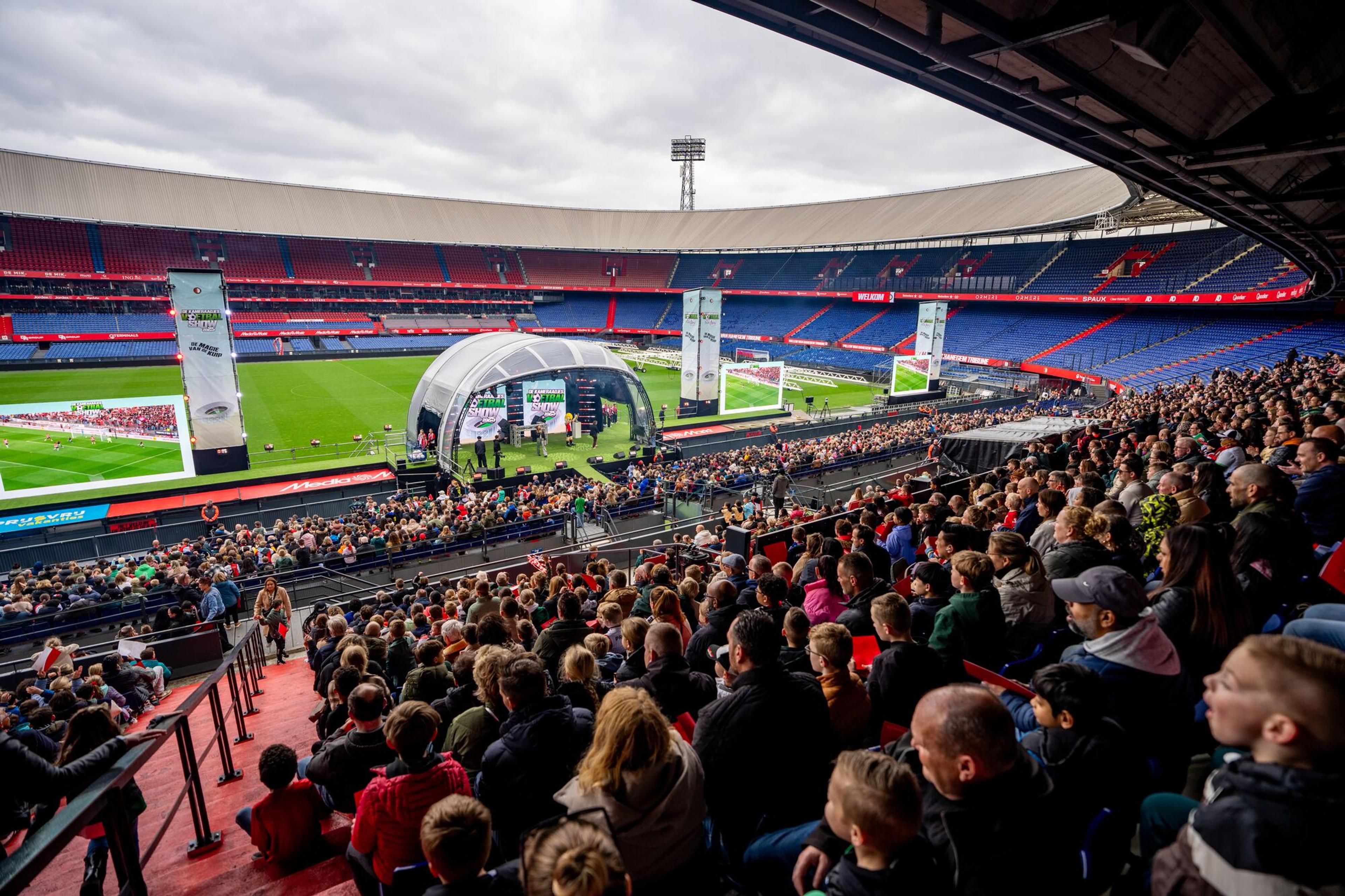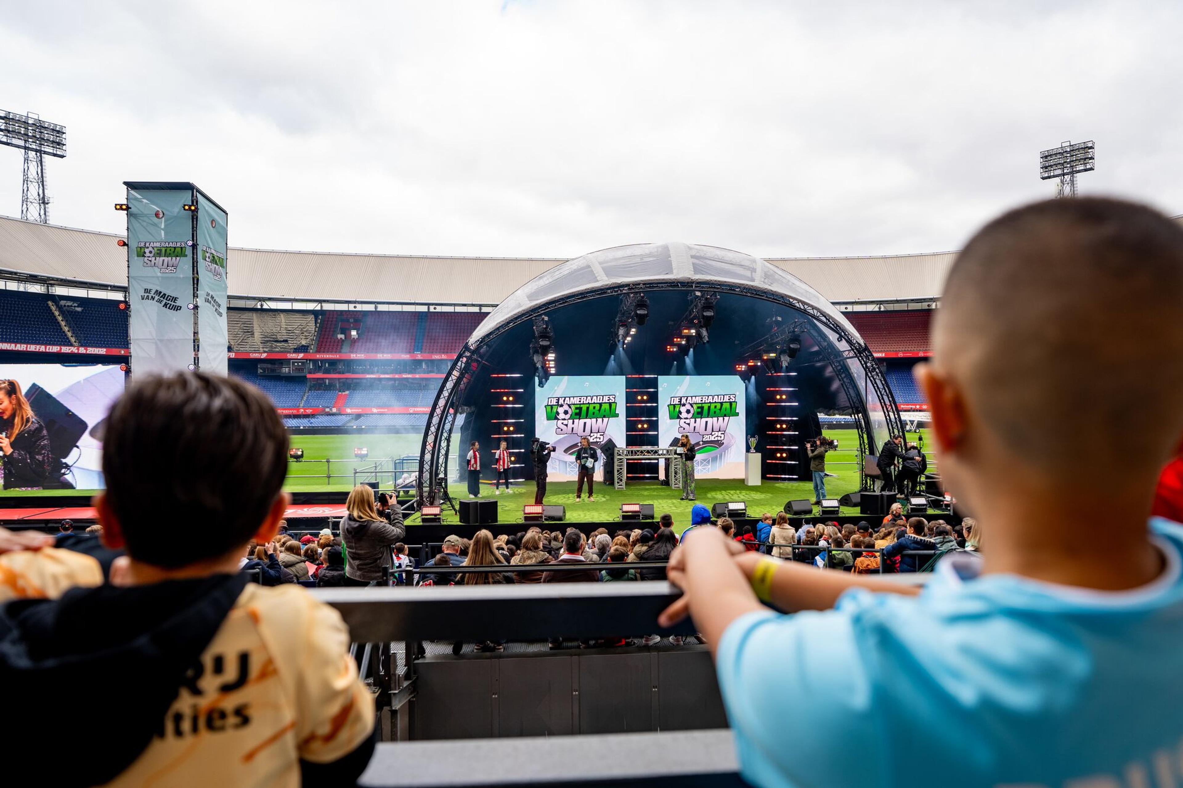 De derde editie van de Kameraadjes Voetbalshow was een groot succes! Duizenden Kameraadjes beleefden op woensdag de magie van De Kuip. Zo zongen ze uit volle borst mee met Feyenoord-liedjes, testten ze hun kennis tijdens een leuke quiz en genoten ze verder van alle energieke optredens van verschillende artiesten. Meerdere spelers van Feyenoord 1 en Feyenoord Vrouwen 1 waren uiteraard ook van de partij. Het absolute hoogtepunt was de uitreiking van de Kameraadjes Bokaal. Tot de volgende editie!